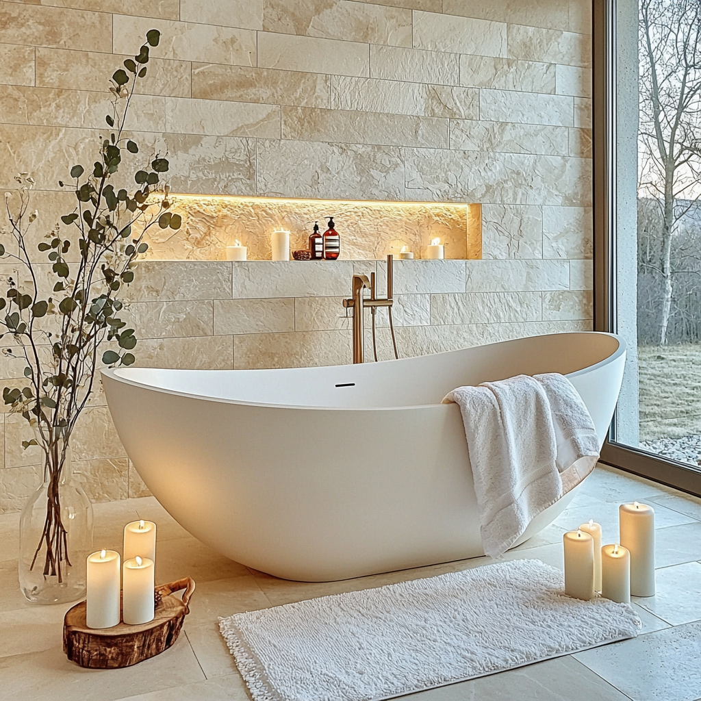 Quartzite Veneer: Subtle shimmer for spa bathrooms