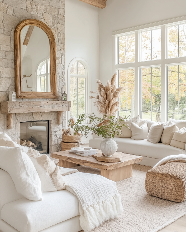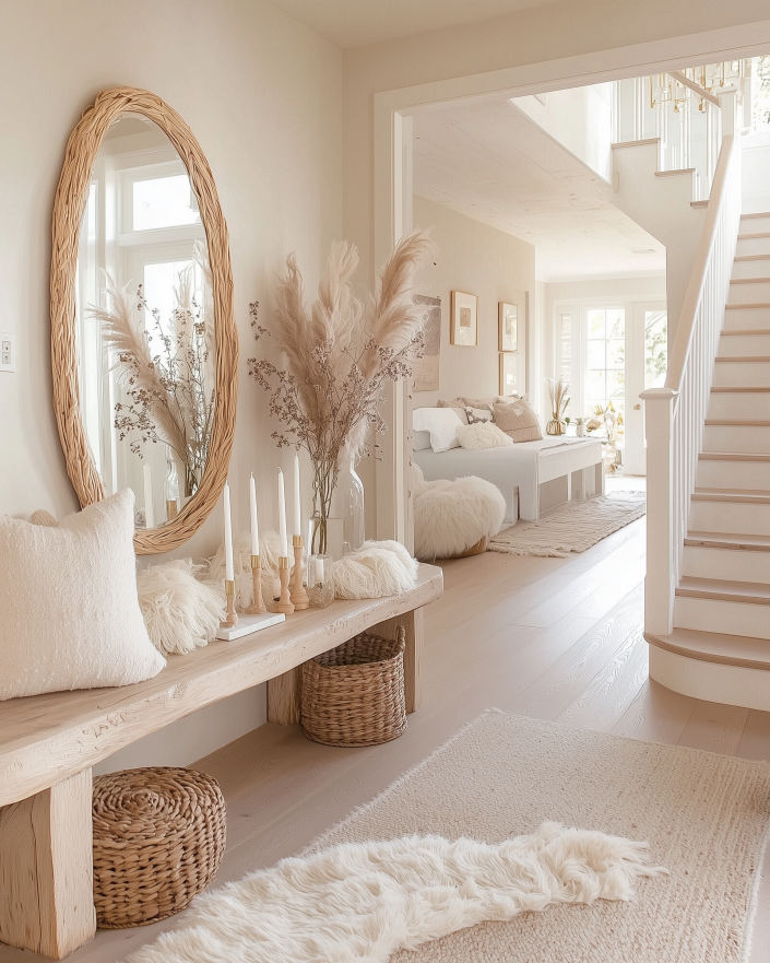 Play with Textures: Pair flannel-wrapped or wood-framed mirrors with linen, wicker, or stone décor for harmony.