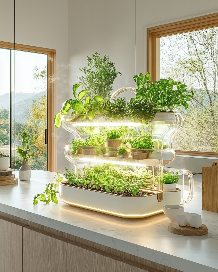Hydroponic GardensCountertop hydroponic systems let you grow greens and herbs year-round without pesticides. They’re space-efficient, self-watering, and bring a calming, nature-infused element into your kitchen.